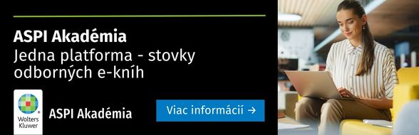 - E-knihy sú dostupné iba v rámci aktívneho predplatného ASPI Akadémia, čo vám prináša pohodlný prístup k obsahu online. Tlačené publikácie si môžete objednať samostatne na našom e-shope: obchod.wolterskluwer.sk.